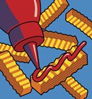 Fries With Ketchup On Blue
