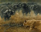 Lioness And Cape Buffalos