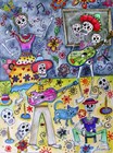 Of particular interest for collectors and home decorators is the bright symmetrical works that mimic textile patterns and the Day of the Dead artwork that has become increasingly popular among home decor.