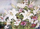 White Lilies And Mixed Colored Cosmos