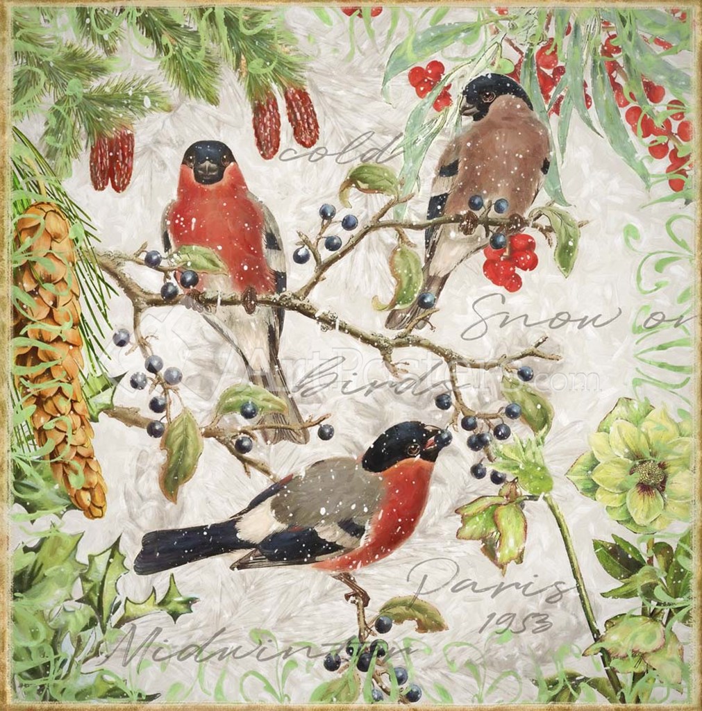 Winter Birds Bullfinches by Cora Niele art print