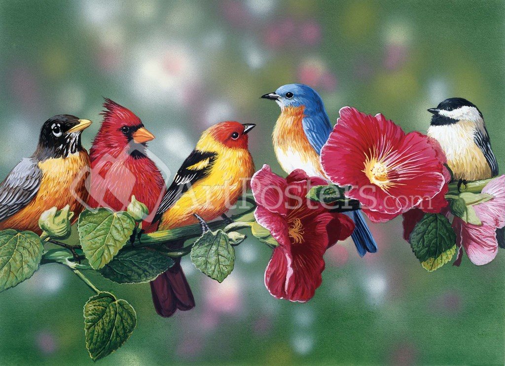Songbirds On Hollyhock by William Vanderdasson art print
