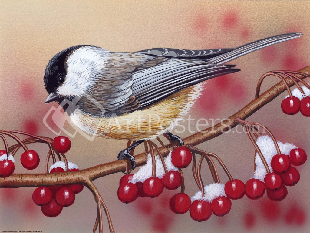 Chickadee With Berries by William Vanderdasson art print
