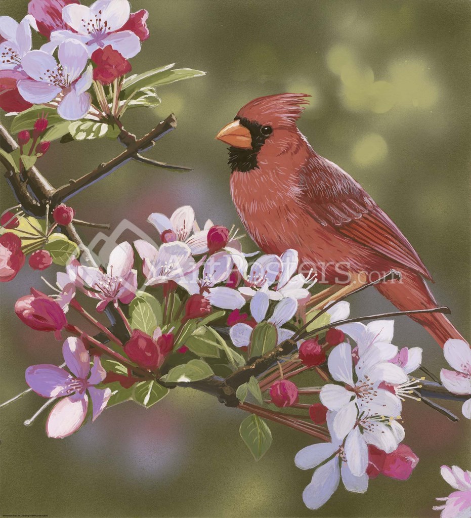 Cardinal with Apple Blossoms by William Vanderdasson art print