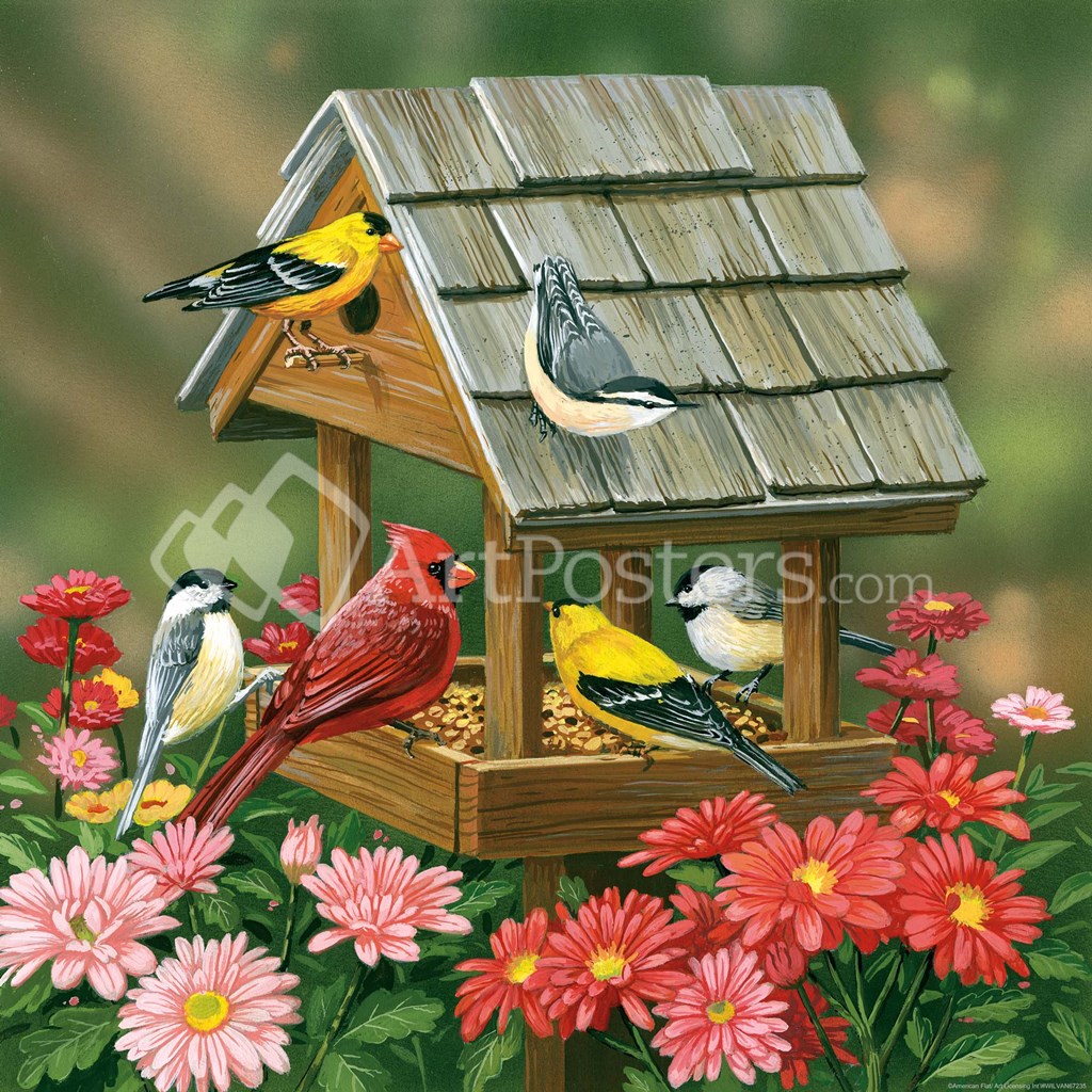 Backyard Birds Fall Feast by William Vanderdasson art print