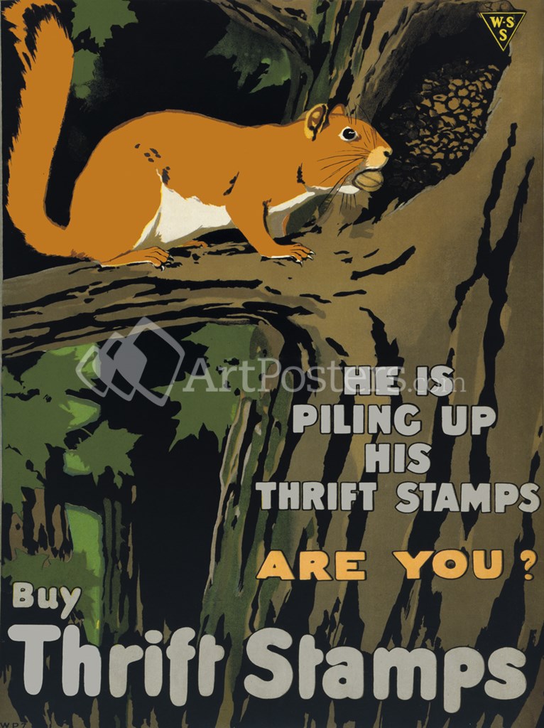 He is Piling up his Thrift Stamps - Are You? by Print Collection art print