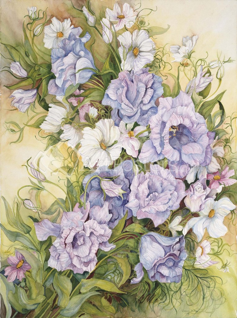 Blue Prairie Gentian And Cosmos by Joanne Porter art print