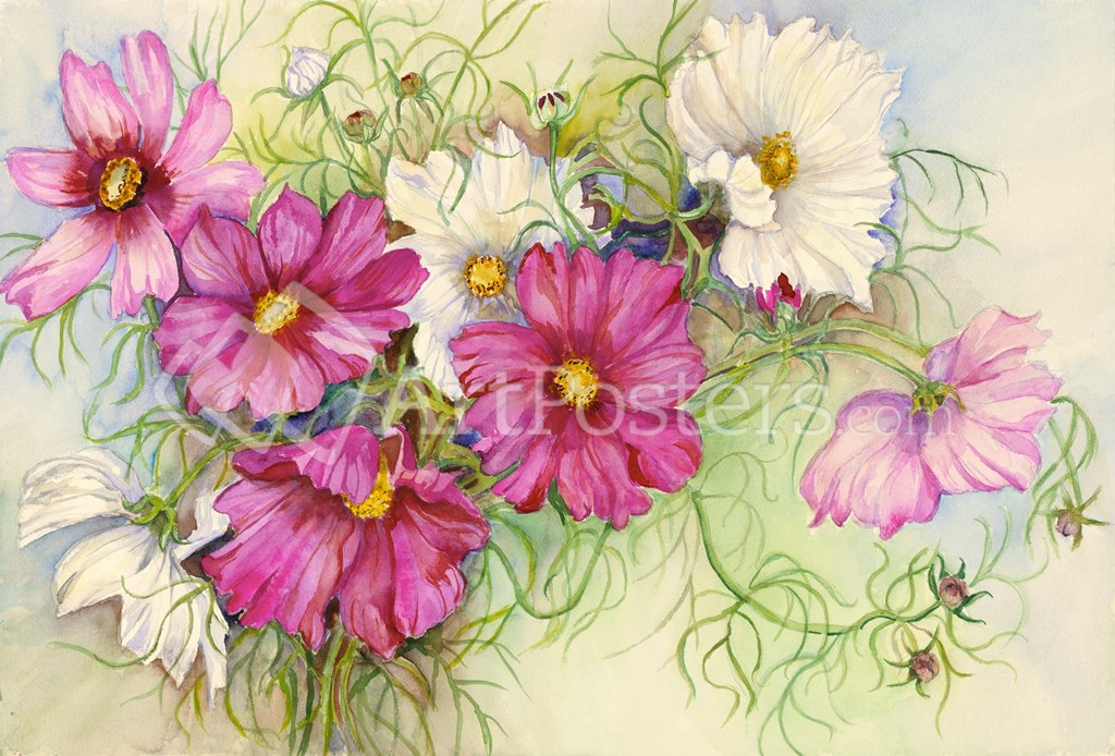 Pink and White Cosmos by Joanne Porter art print