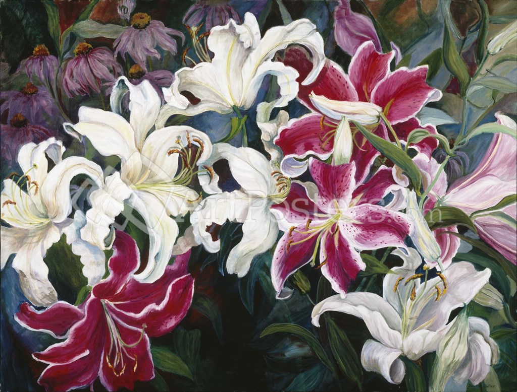 Field Of White And Pink Lilies by Joanne Porter art print