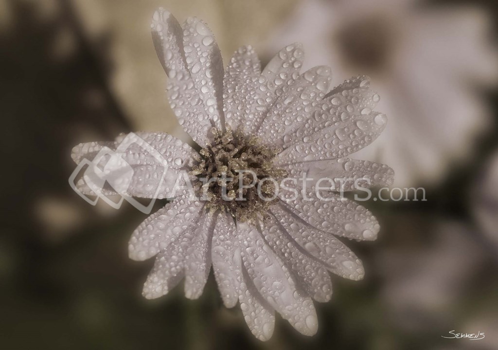 White Flower With Raindrops by Gordon Semmens art print