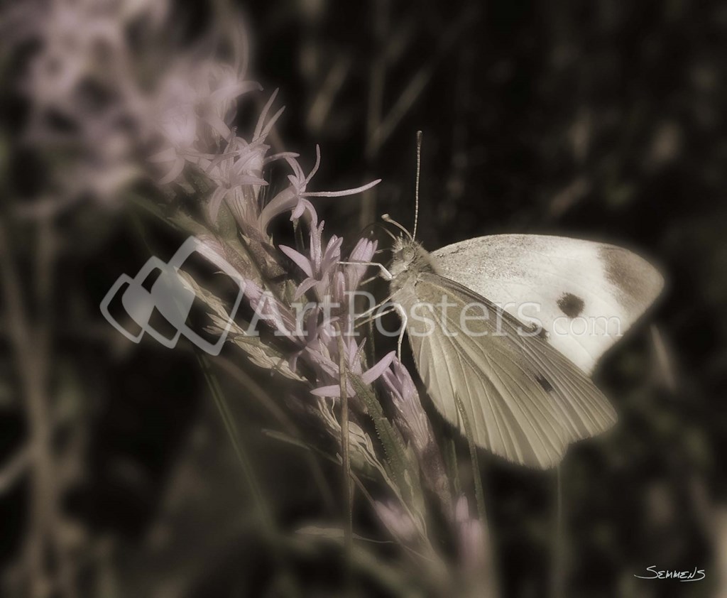 Moth On Lavendar Wildflower by Gordon Semmens art print