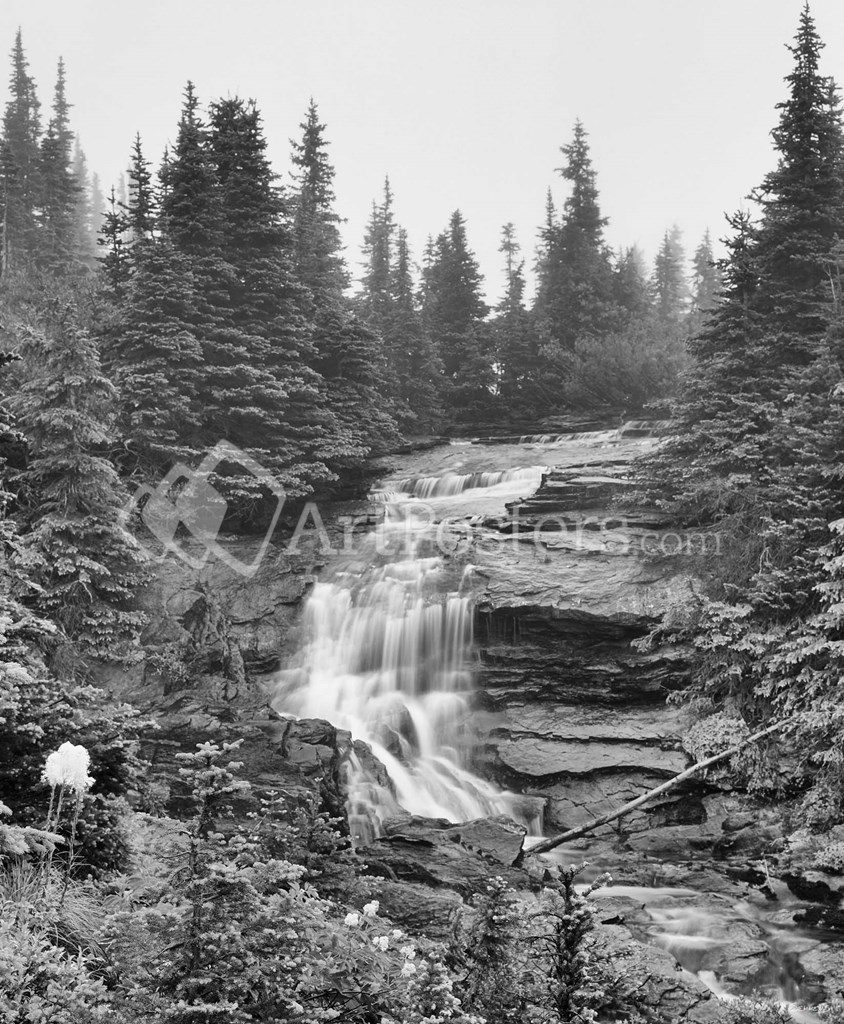Waterfall Over Rock With Wildflowers by Gordon Semmens art print
