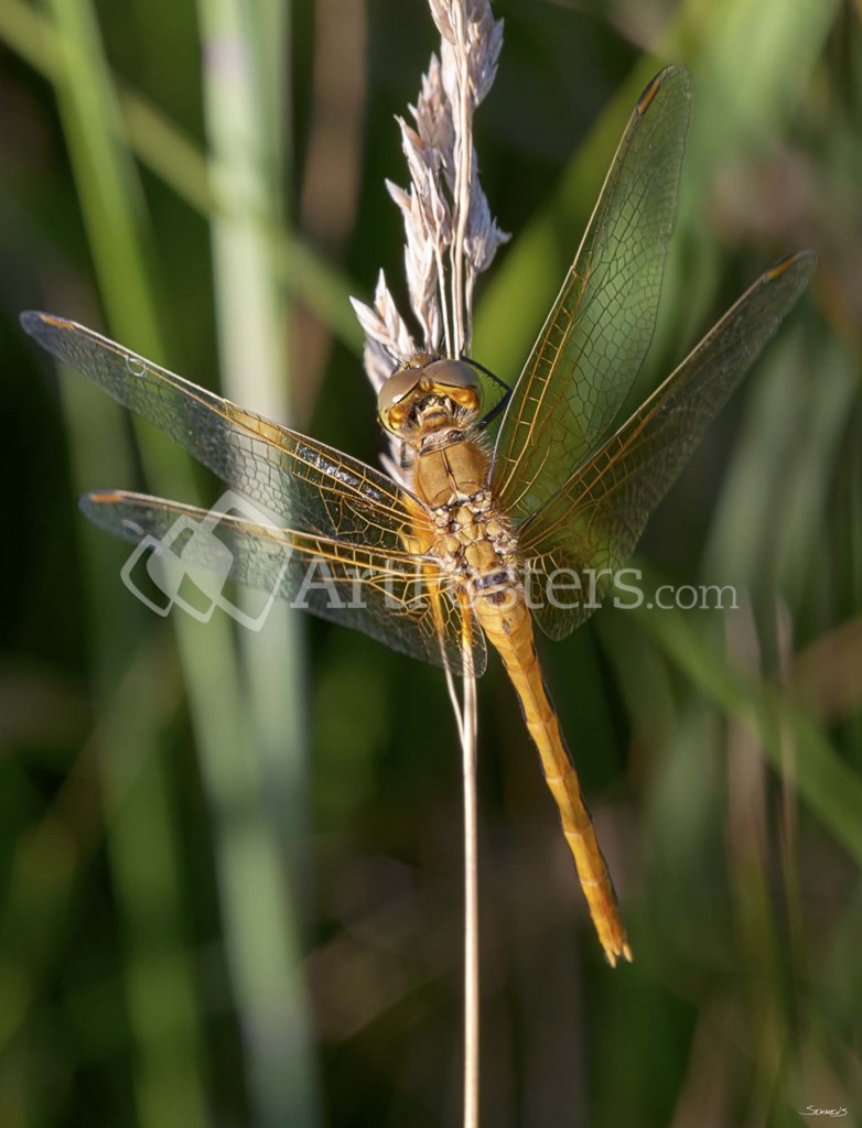 Yellow Dragonfly On White Bloom - Gordon Semmens