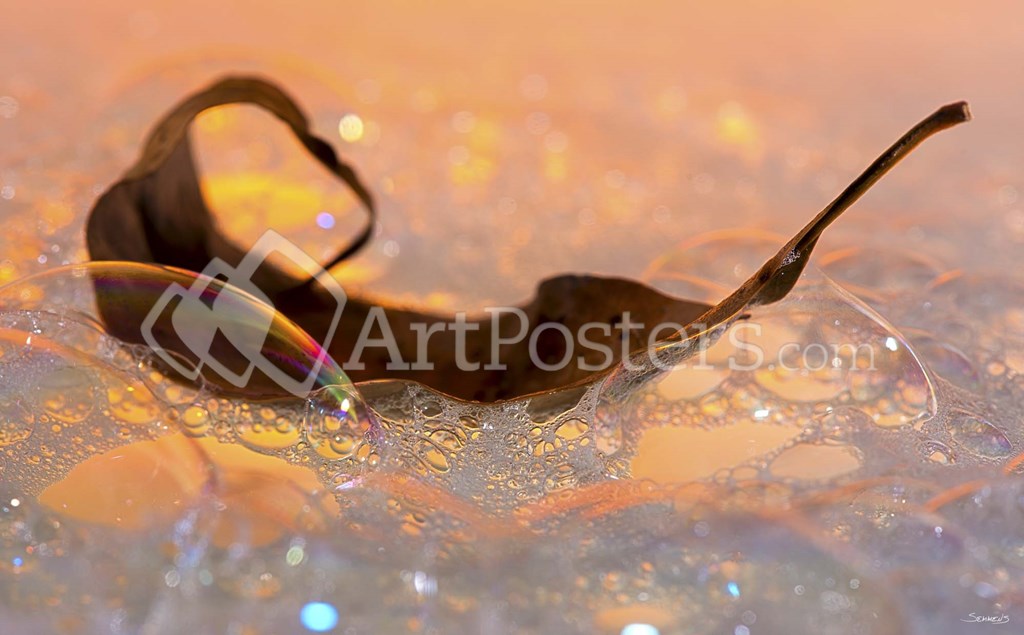 Fall Leaf Floating In Water Bubbles II by Gordon Semmens art print