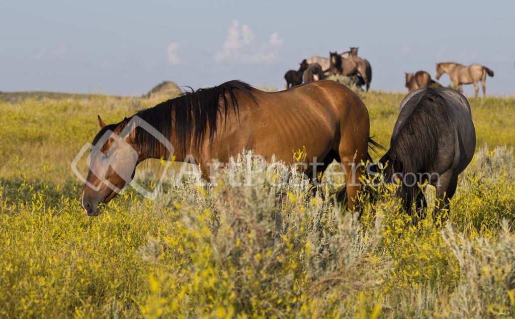 Title: Horses Grazing In Yellow Field III