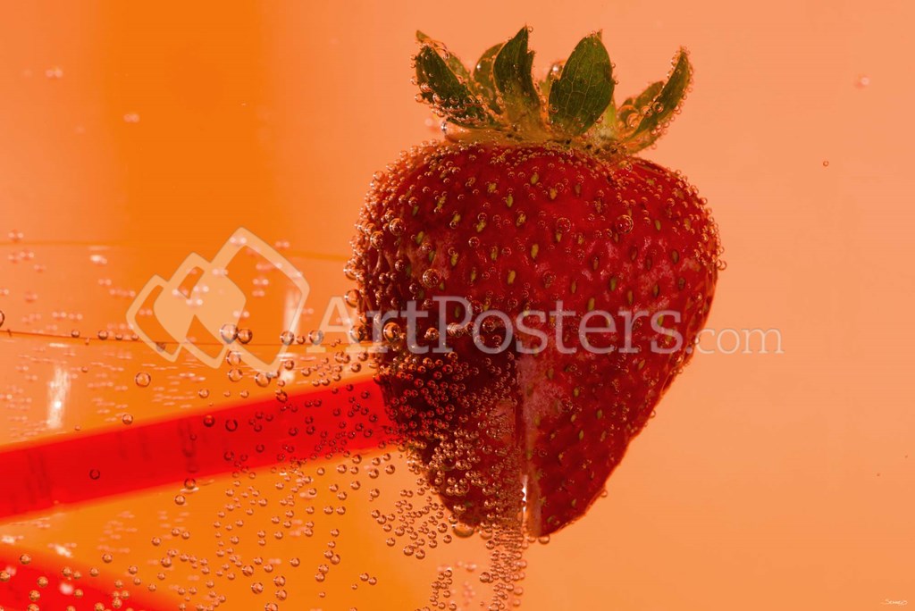 Strawberry On Red Swirl Glass by Gordon Semmens art print