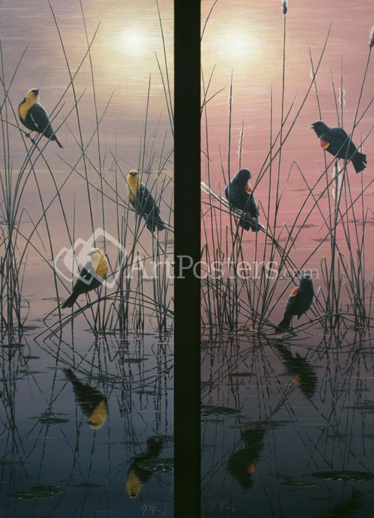 Red Winged & Yellow Headed Blackbirds by Jeff Tift art print