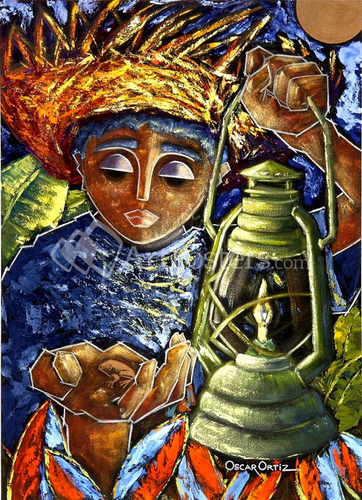 Boy & Lantern by Oscar Ortiz art print