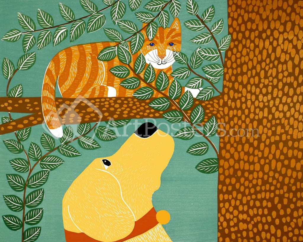 Up A Tree  Striped Yellow by Stephen Huneck art print