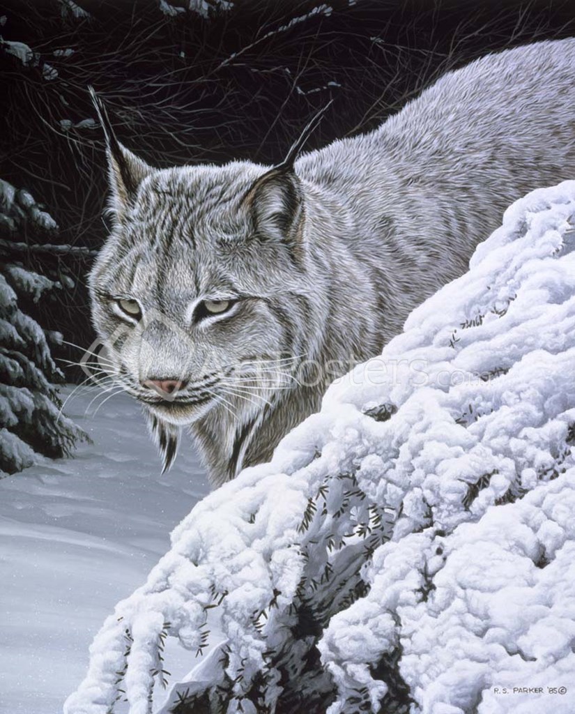 Behind The Hemlock - Lynx by Ron Parker art print