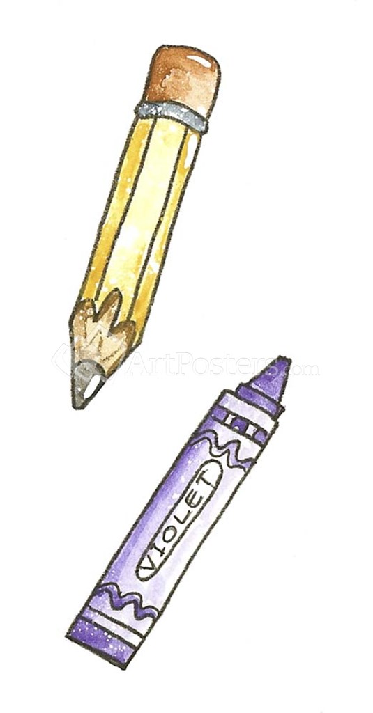 School Two Crayons by Shelly Rasche art print