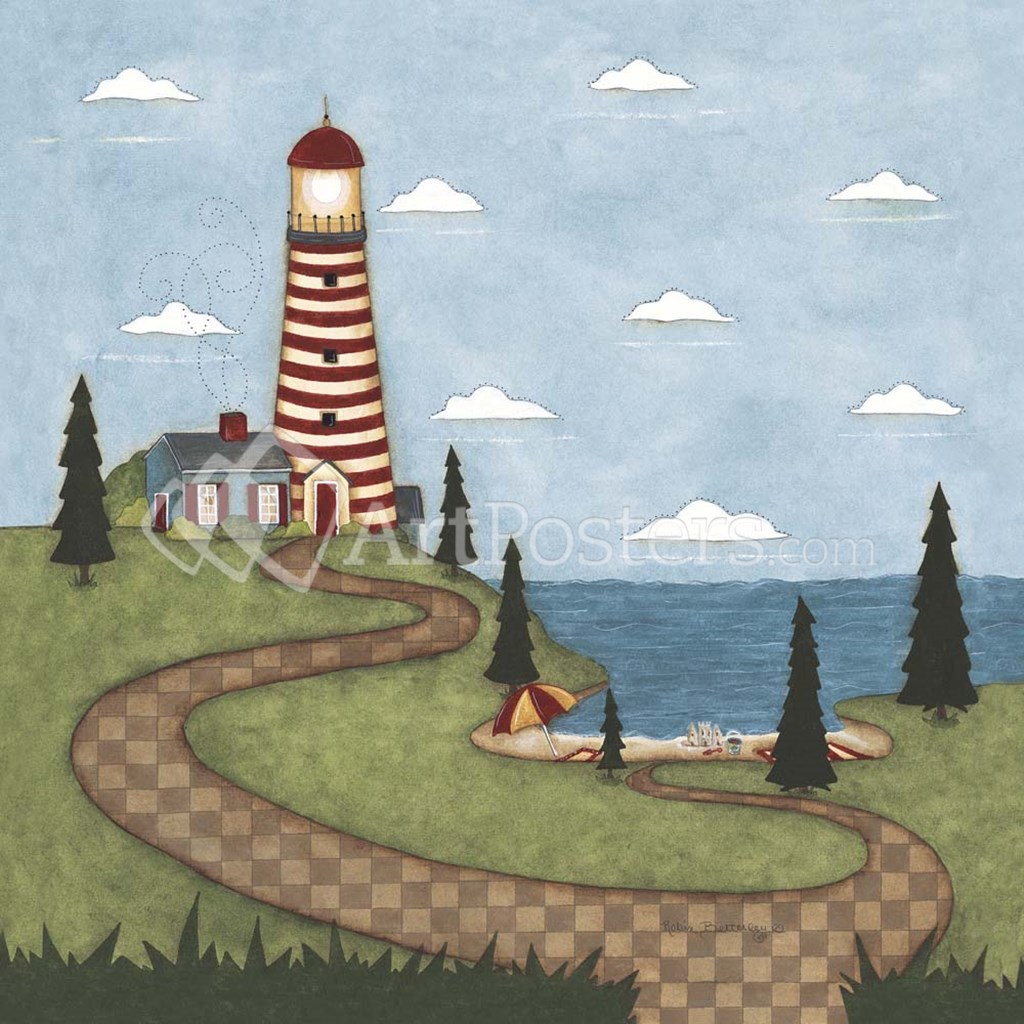 Red And White Lighthouse by Robin Betterley art print