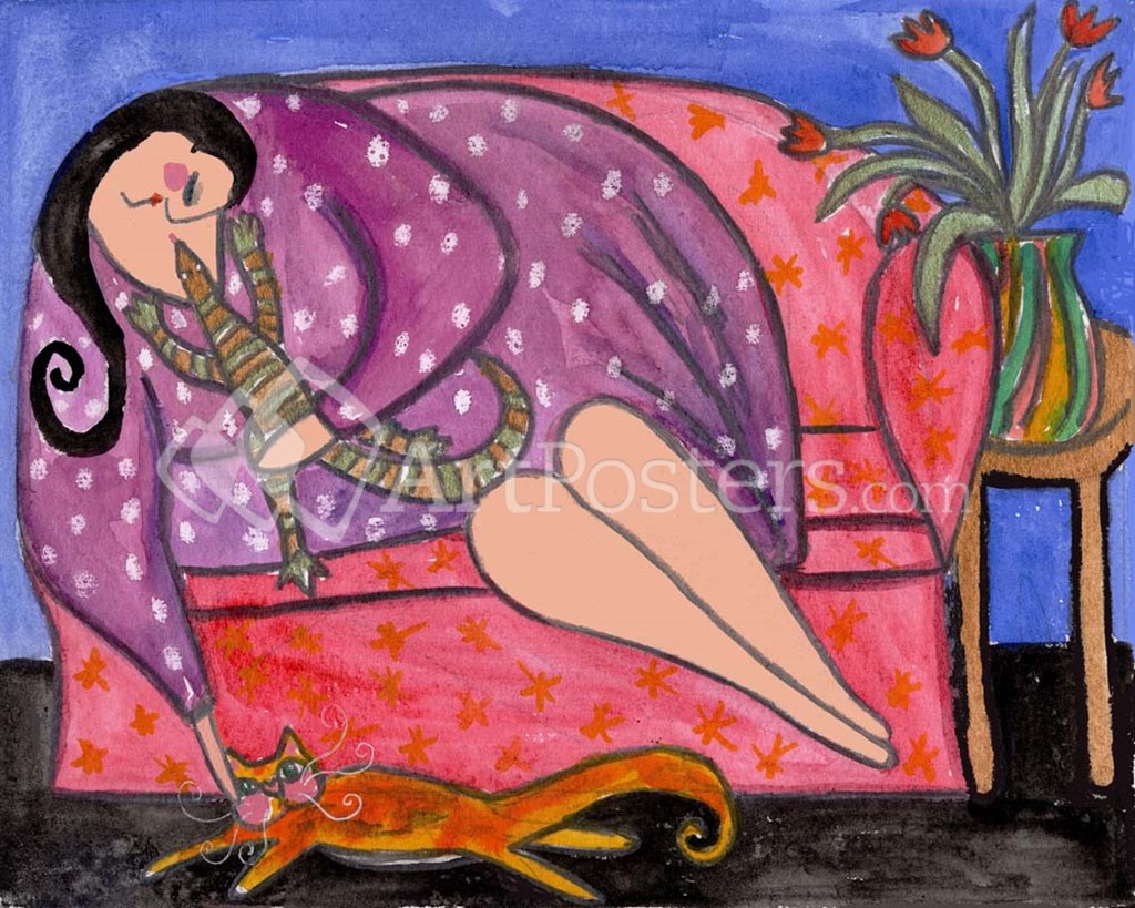 Big Diva Lounging With Lizard & Kitty by Wyanne art print