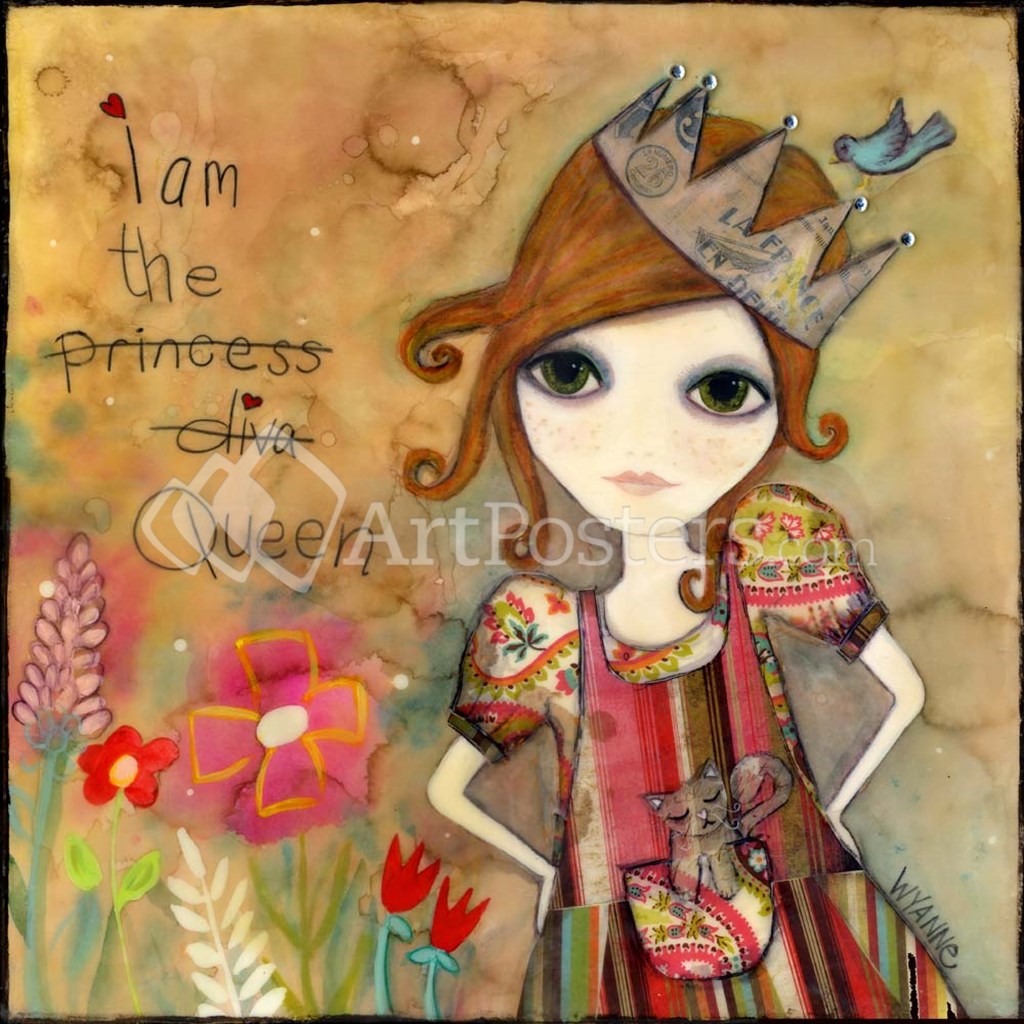 Big Eyed Girl I Am The Queen (With Words) by Wyanne art print