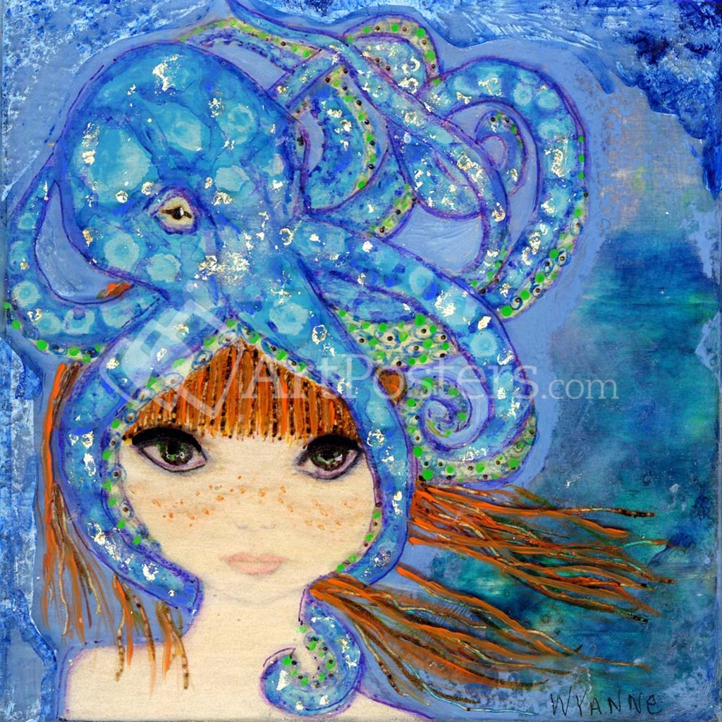 Big Eyed Girl Ocean Blue by Wyanne art print