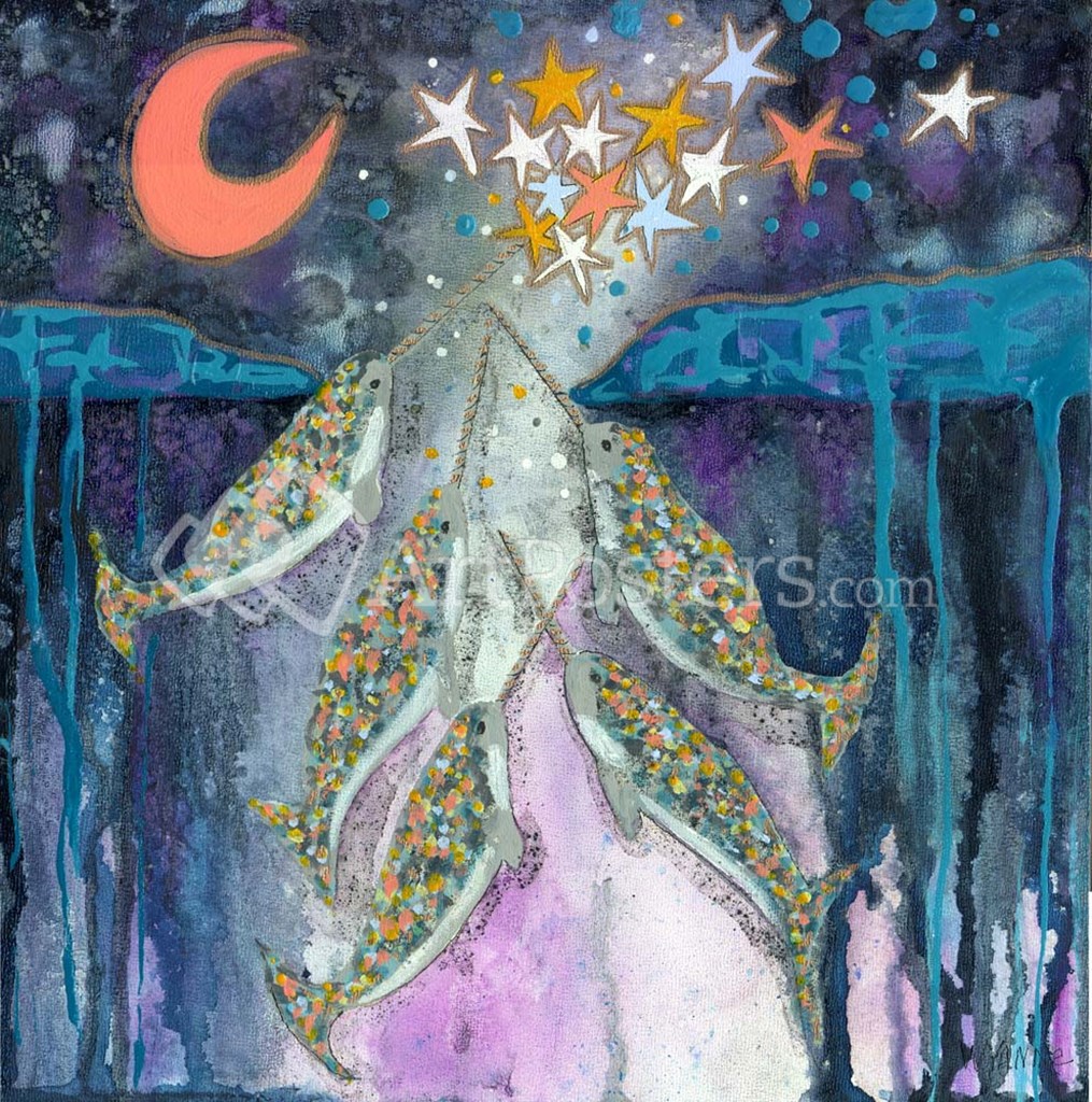 Stargazer Celebration Narwhals by Wyanne art print