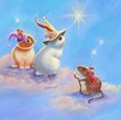 Two Lop Eared Bunnies Mouse and Two Bunnies in Clouds I by Judy Mastrangelo art print