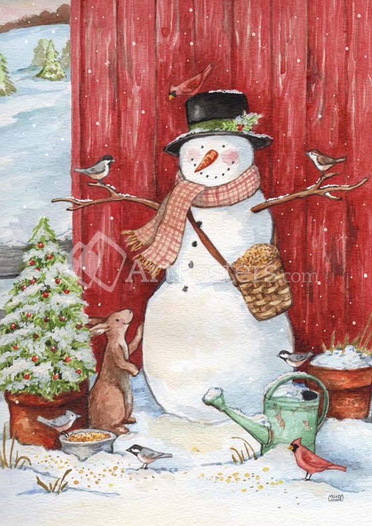 Snowman with Birds and Flurries by Melinda Hipsher art print