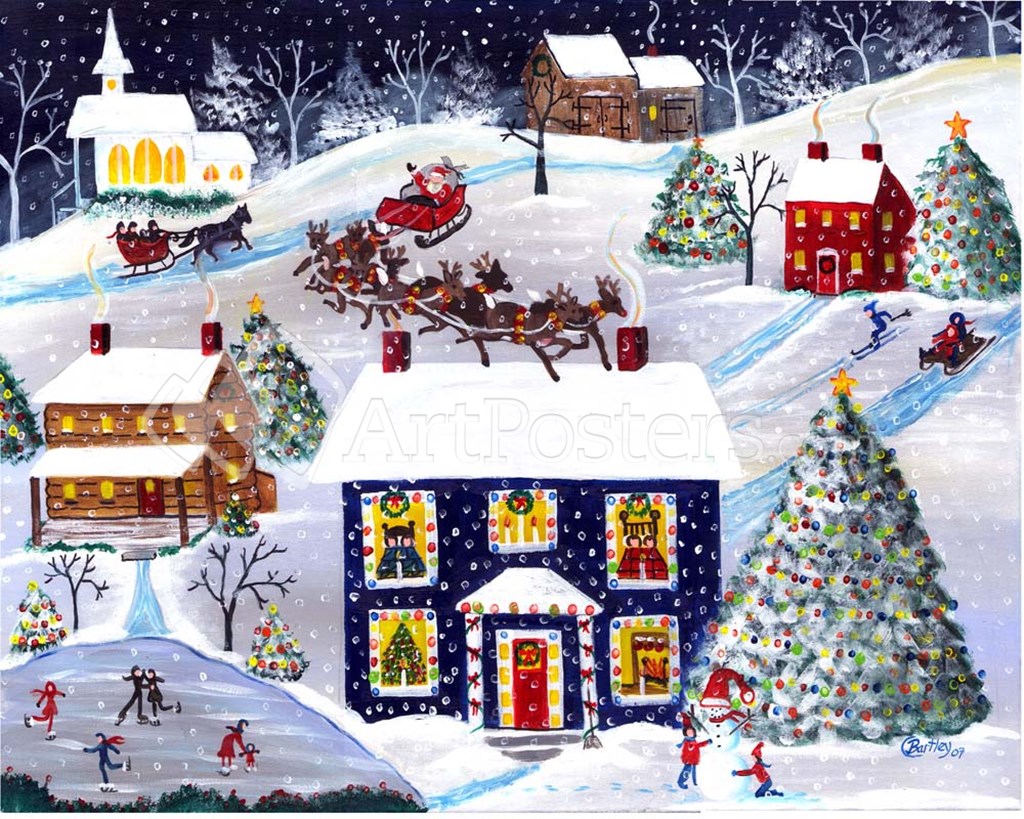 Santa Reindeer Christmas Eve by Cheryl Bartley art print