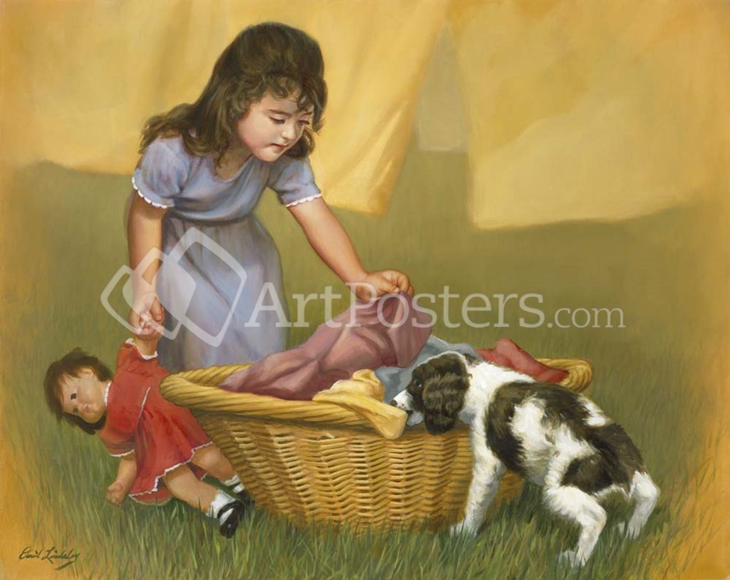 Girl With Puppy by David Lindsley art print
