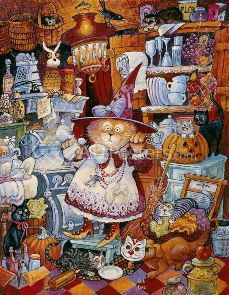 Kitty Kitchen Witch 2 by Bill Bell art print