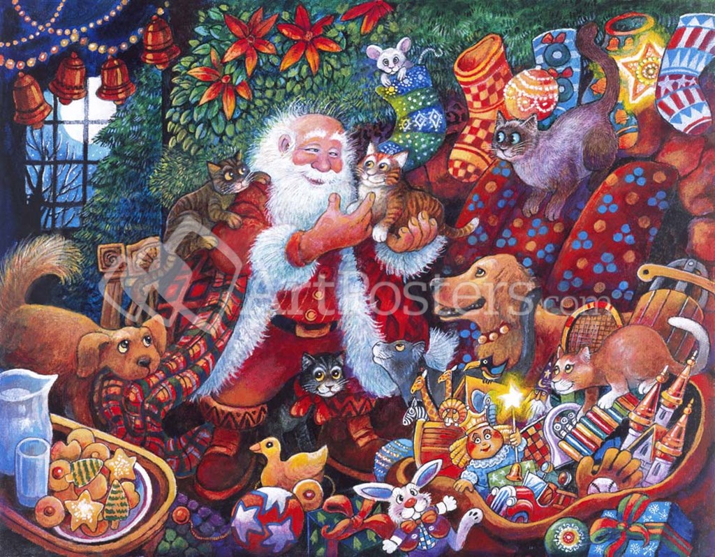 Santa with Pets by Bill Bell art print