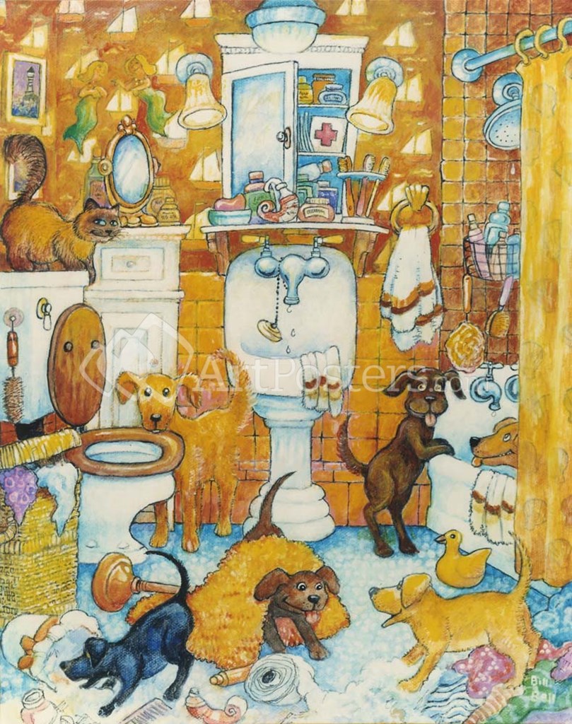 Orange Bathroom Pups by Bill Bell art print