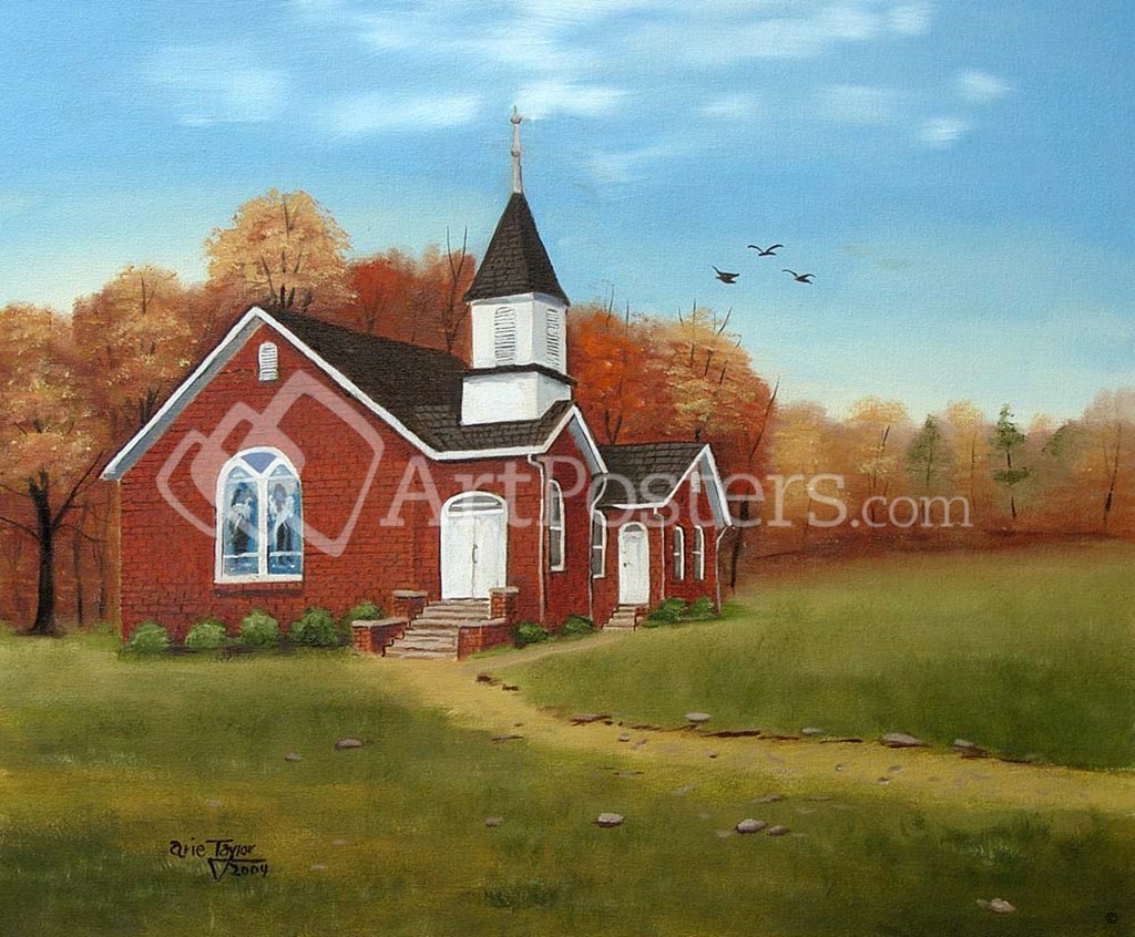 Palm Tree Church in Autumn by Arie Reinhardt Taylor art print