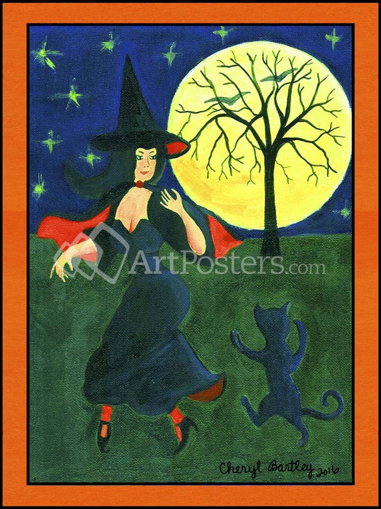 Halloween Witch Black Cat Moon Dance - Cheryl Bartley