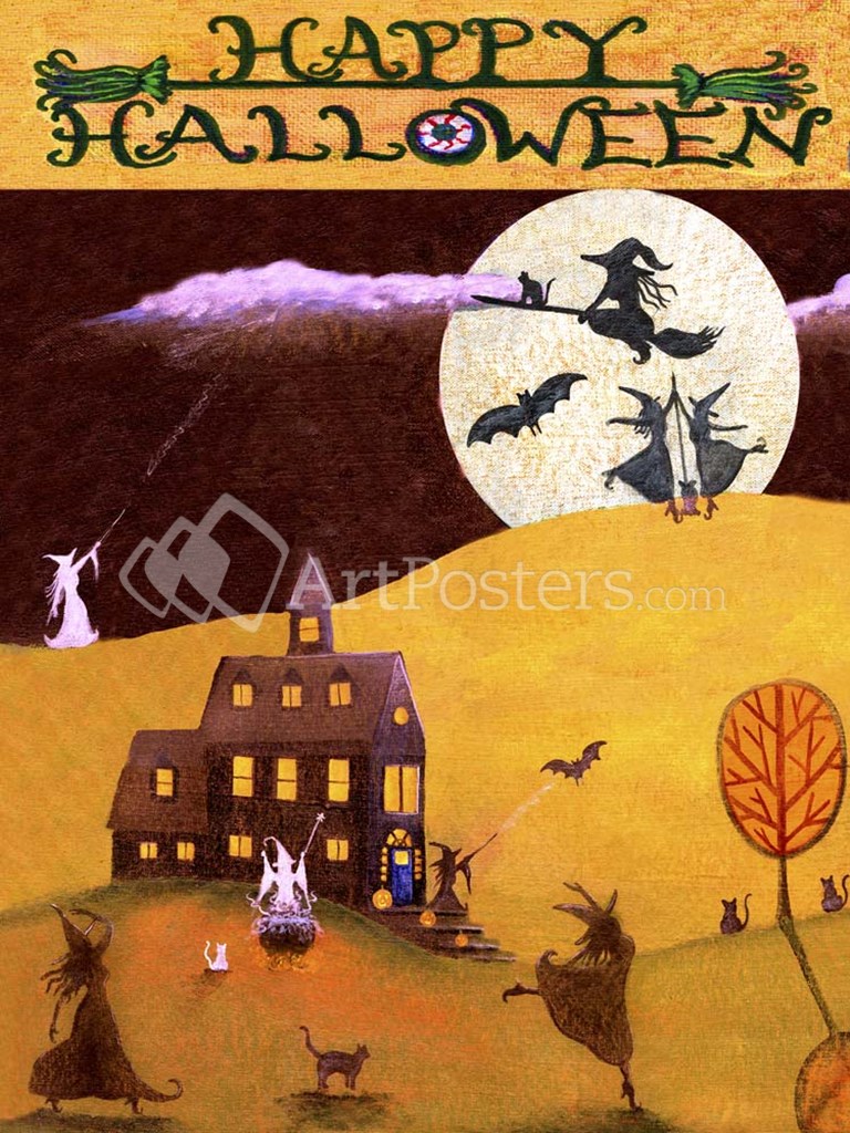 White Witch Halloween Dance by Cheryl Bartley art print