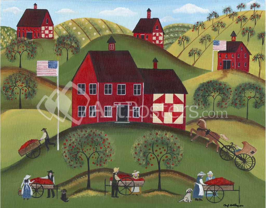 Primitive Americana Red Apple Barn by Cheryl Bartley art print