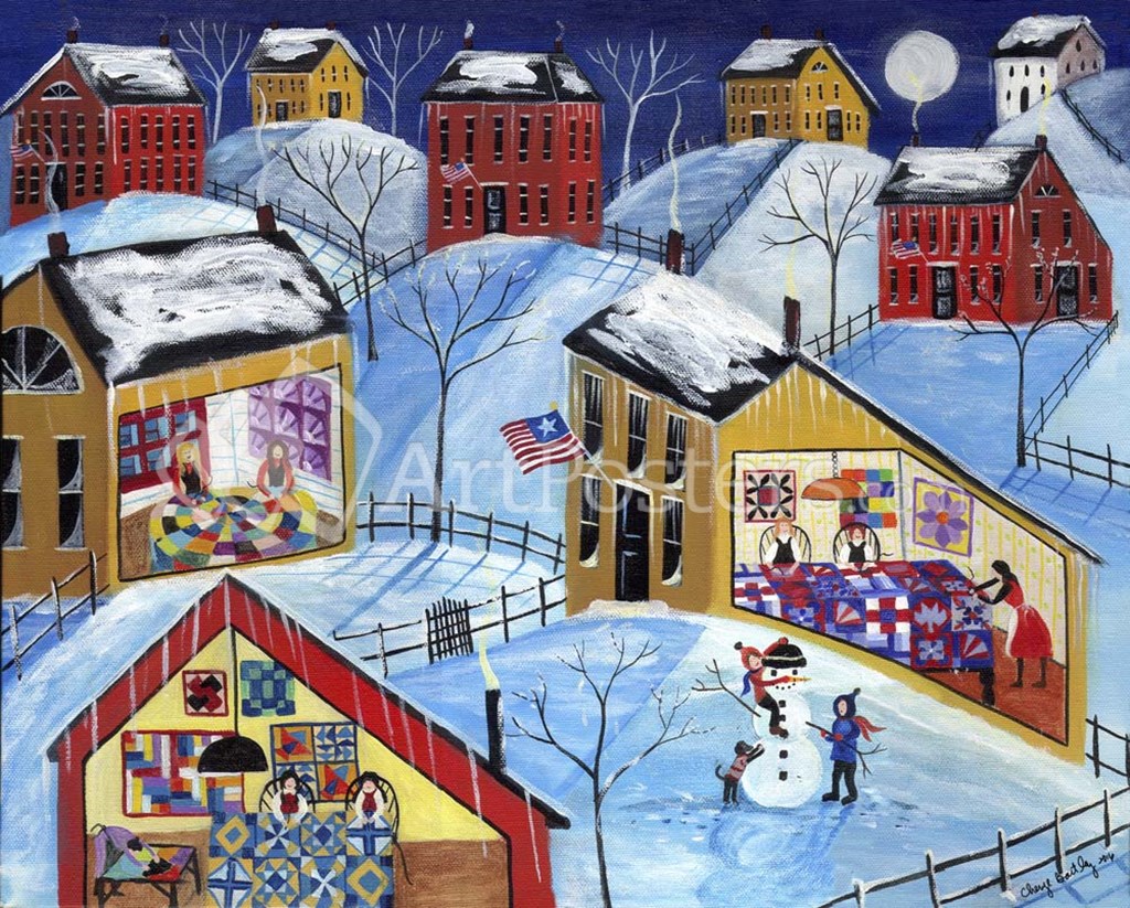 Winter Moon Quilter Village by Cheryl Bartley art print