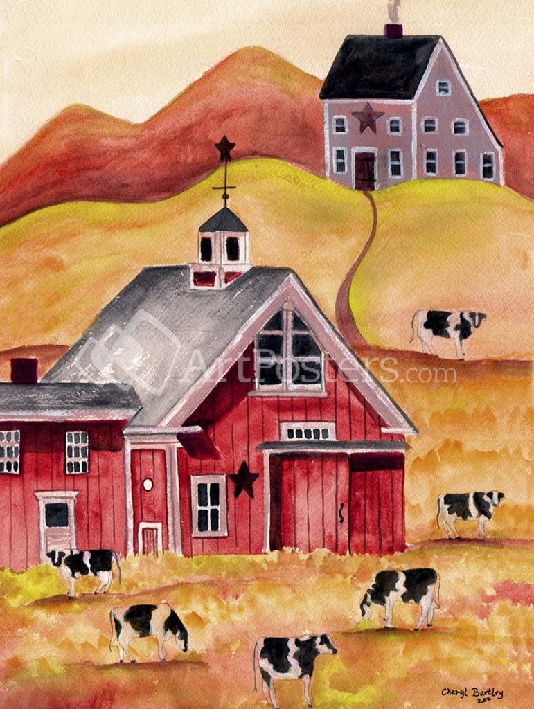 Cow Folk Art Barn by Cheryl Bartley art print