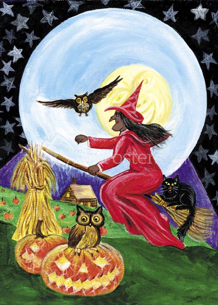 Red Witch Halloween Moon by Cheryl Bartley art print