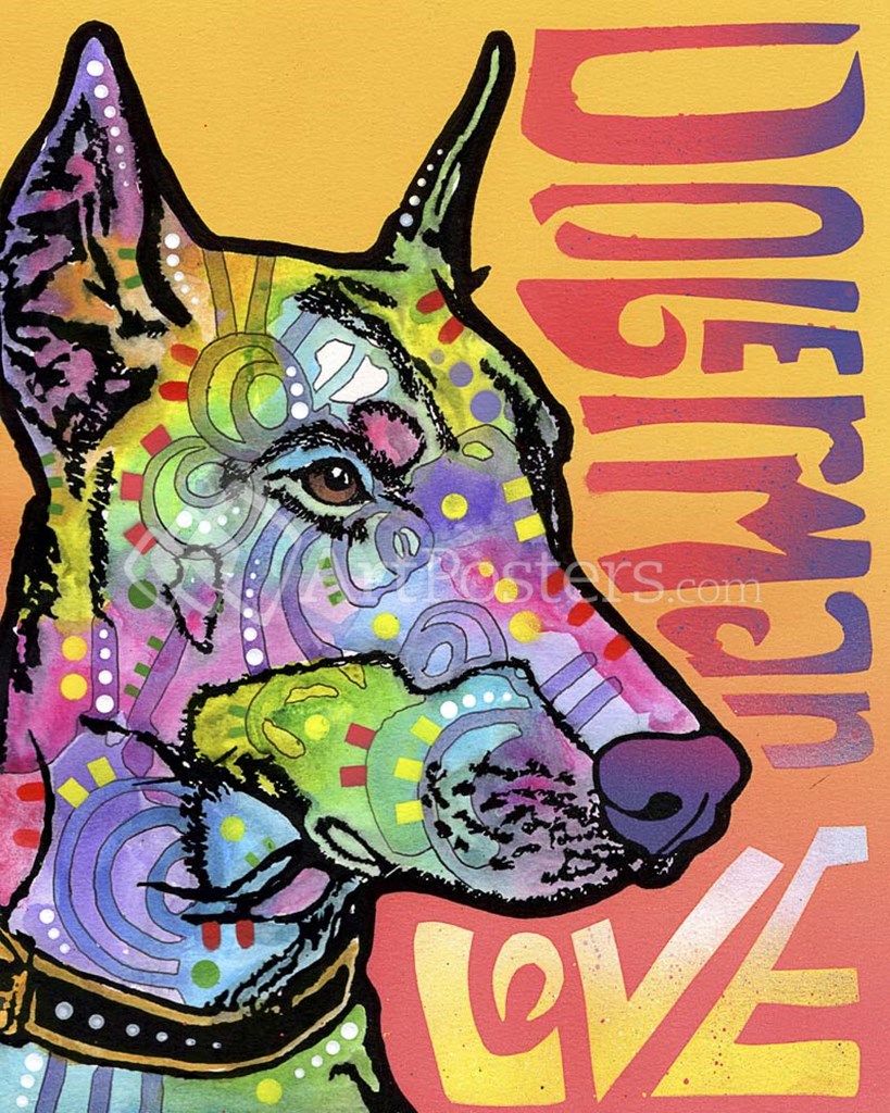 Doberman Love by Dean Russo art print