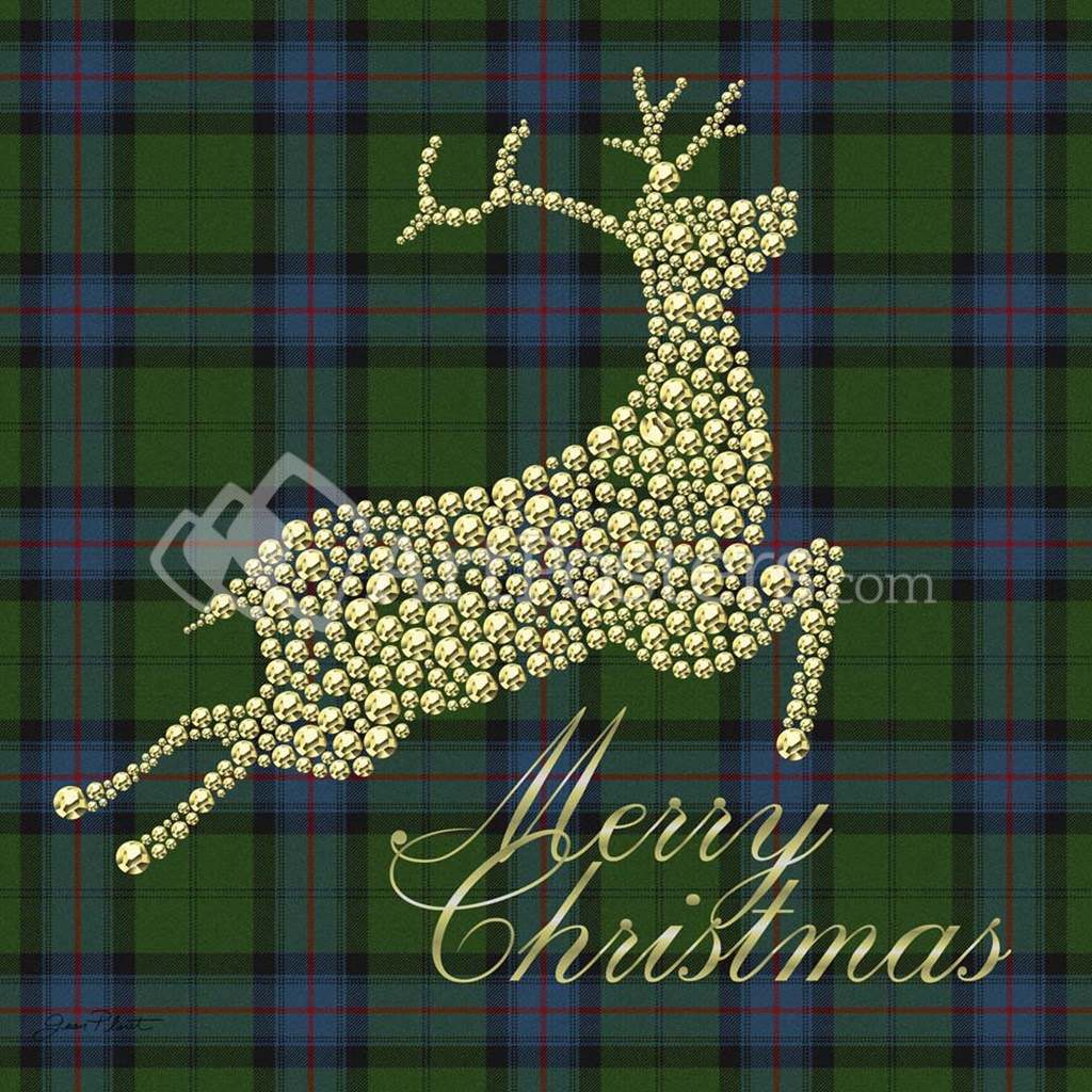 Merry Christmas Plaid - Gold Deer - Jean Plout