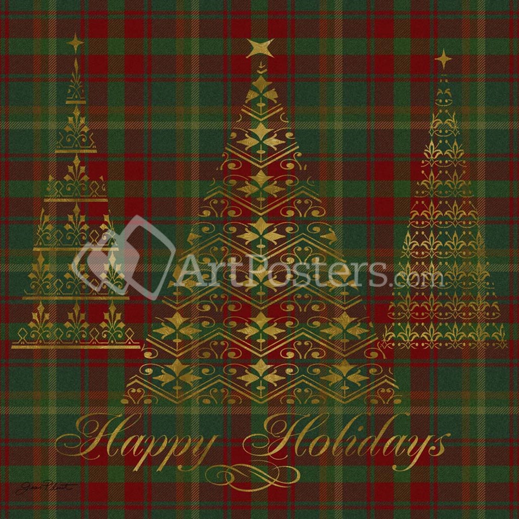 Happy Holidays Plaid - gold by Jean Plout art print