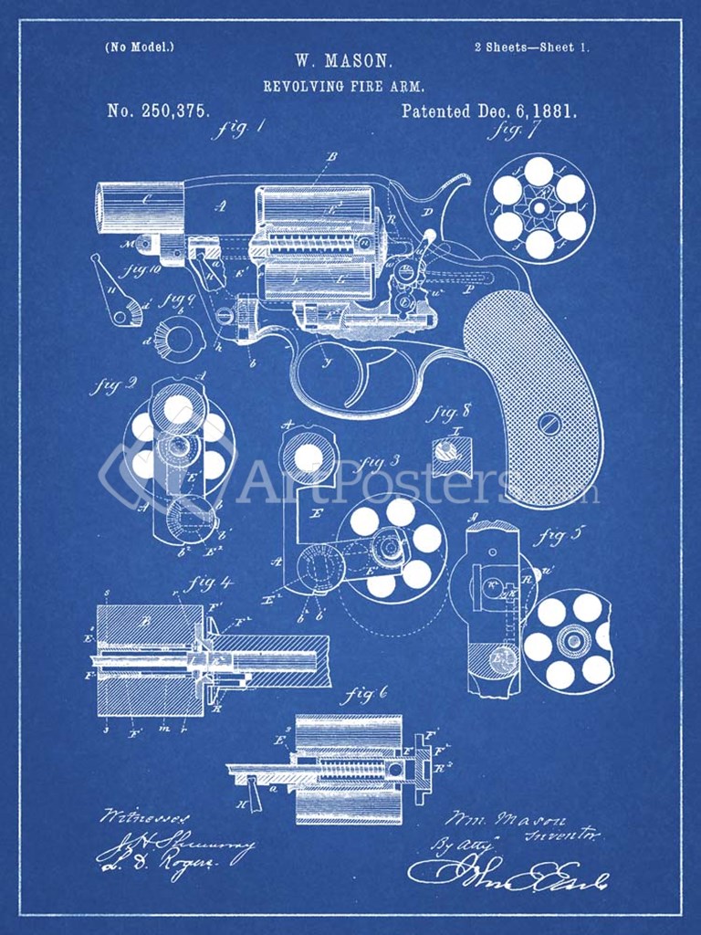 Revolving Fire Arm Patent - Blueprint - Cole Borders