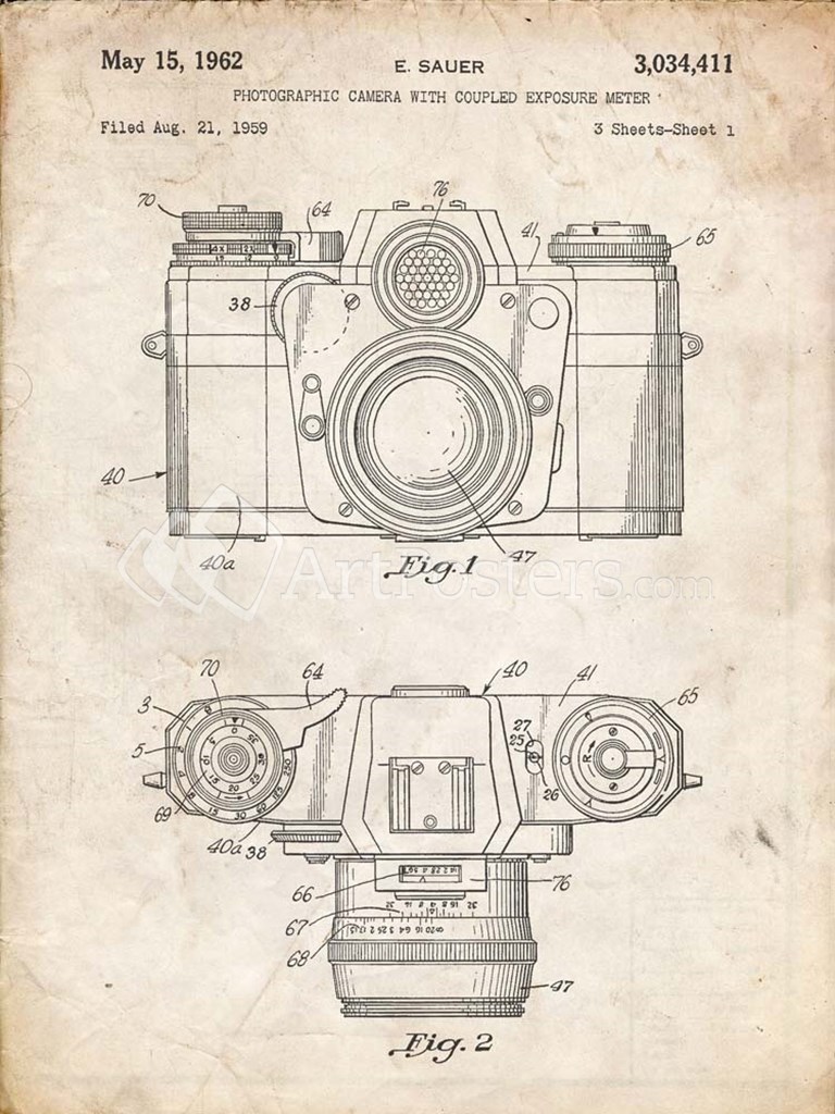 Photographic Camera With Coupled Exposure Meter Patent - Vintage Parchment - Cole Borders