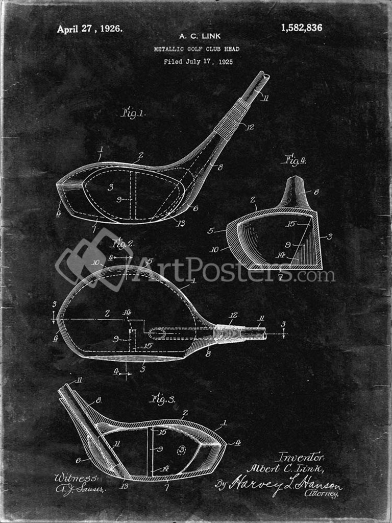 Title: Metallic Golf Club Head Patent - Black Grunge